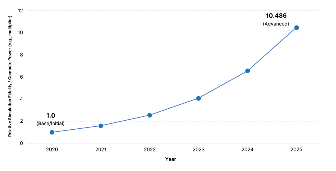 The improvements in simulation fidelity and AI-assisted modeling are easier to understand when visualized over time, as shown in the chart below.